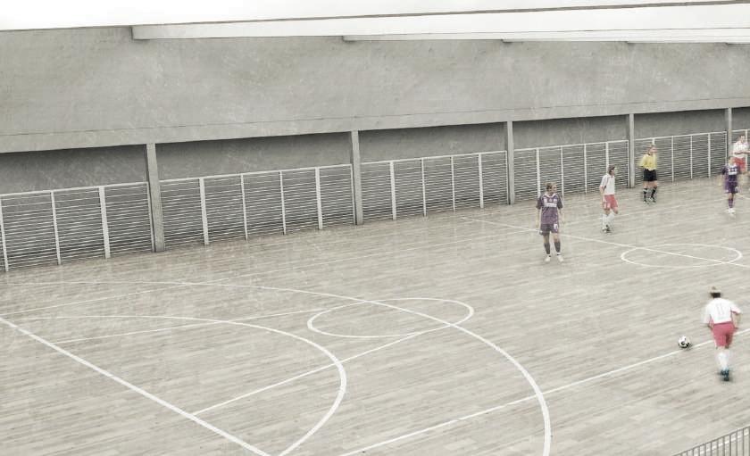 The materials, ...chosen for the proposal were the result of a long search for the right balance between low cost, low maintenance and high aesthetic materials. To achieve the design goals which we had in mind, we chose a mixture of wood (roof-construction and frames), polycarbonate multi wall sheets (facade) and concrete (wall and floor).