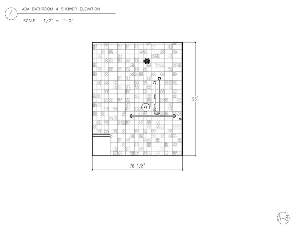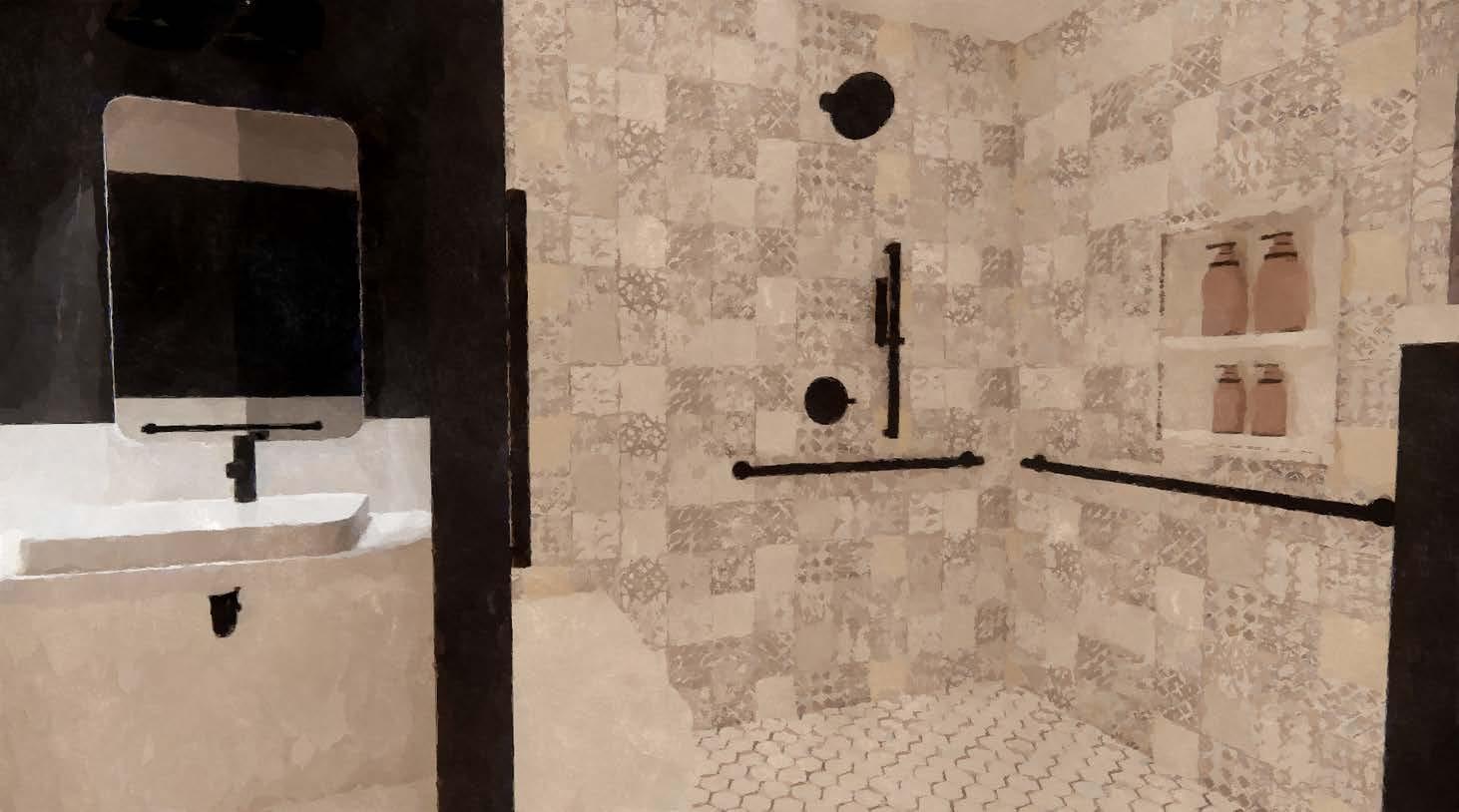 Detailed ADA compliant restroom in a boutique hotel located in New York City. Selectively choosing materials that have great slip resistant rates and can be easily maintained