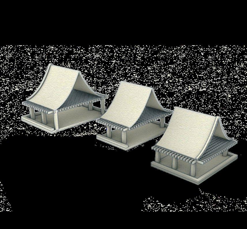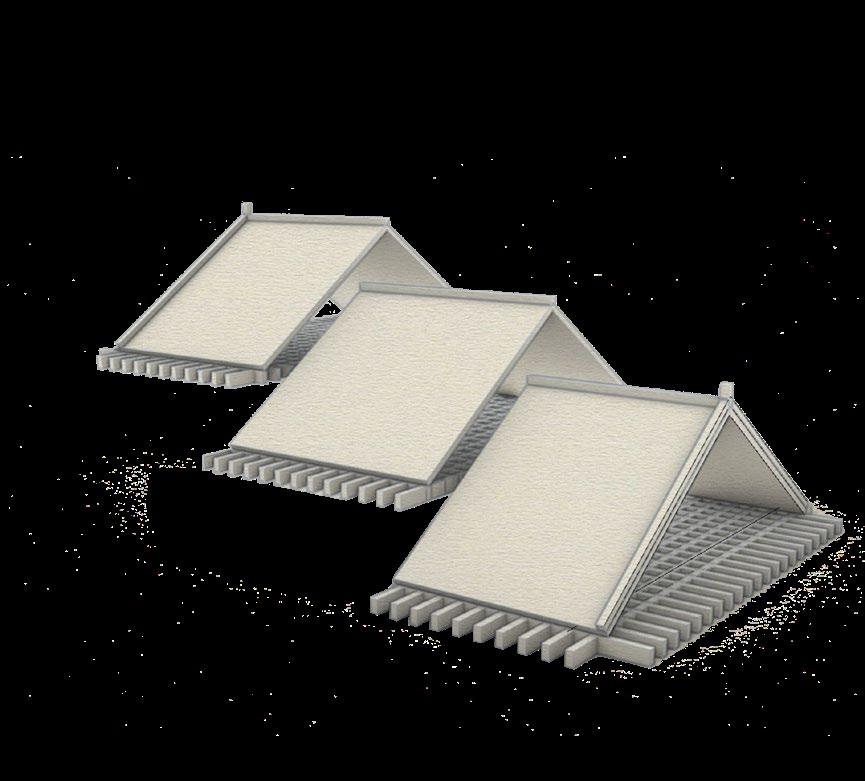 Type 01 - Roof Inspired by traditional Chinese Architecture. Type 02 - Roof Inspired by traditional Chinese Architecture. Type 03 Roof Inspired by traditional Chinese Architecture. The Public Area Extension of the Village, shared space.