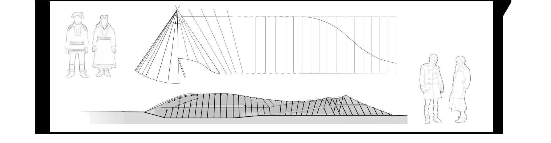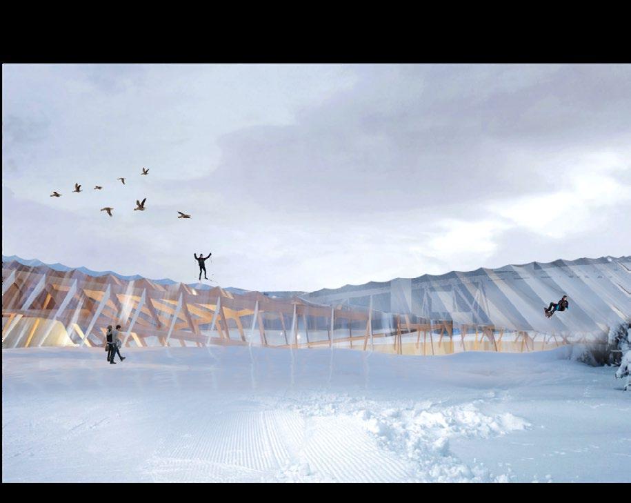 Our project takes inspiration from traditional Sami tents, giving a nod to Finnish history with a modern touch. The unique design, shaped like a triangle, connects the forest and ski resort.