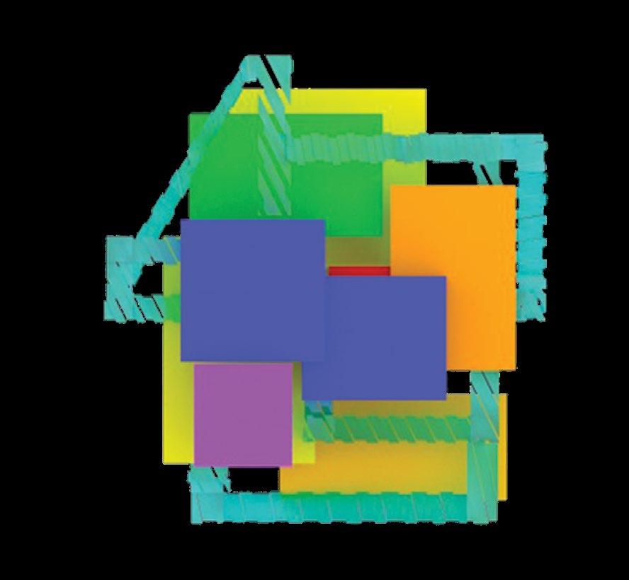 By integrating the staircase with the window openings, it can create a series of visual connections and relationships between the interior and exterior spaces, blurring the boundaries between them and creating a sense of continuity and flow.