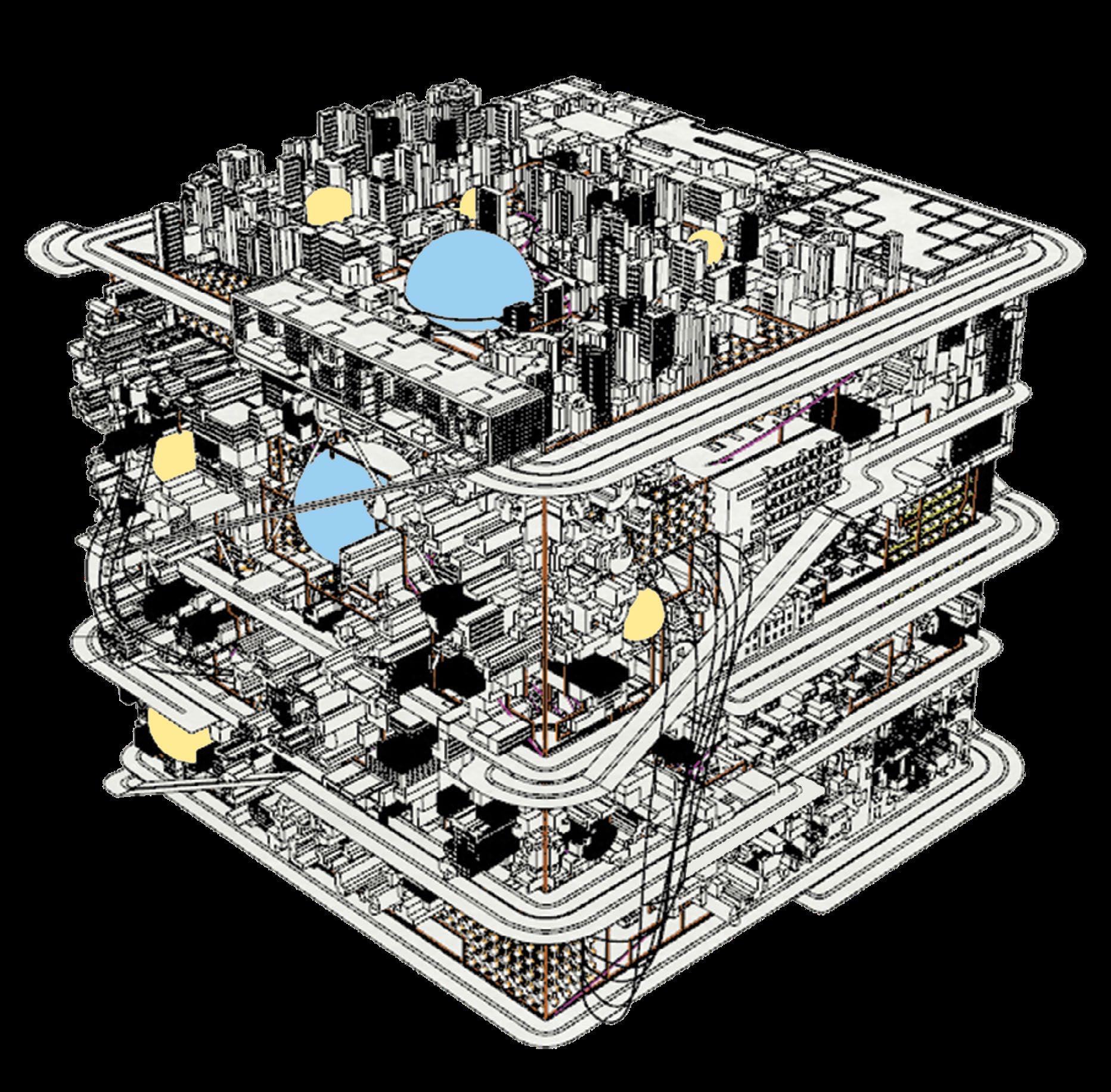 Framing Structure + Cargo Paths Structure System + Unit transfer path Functional District - Outer Layers Residential Commercial Industrial