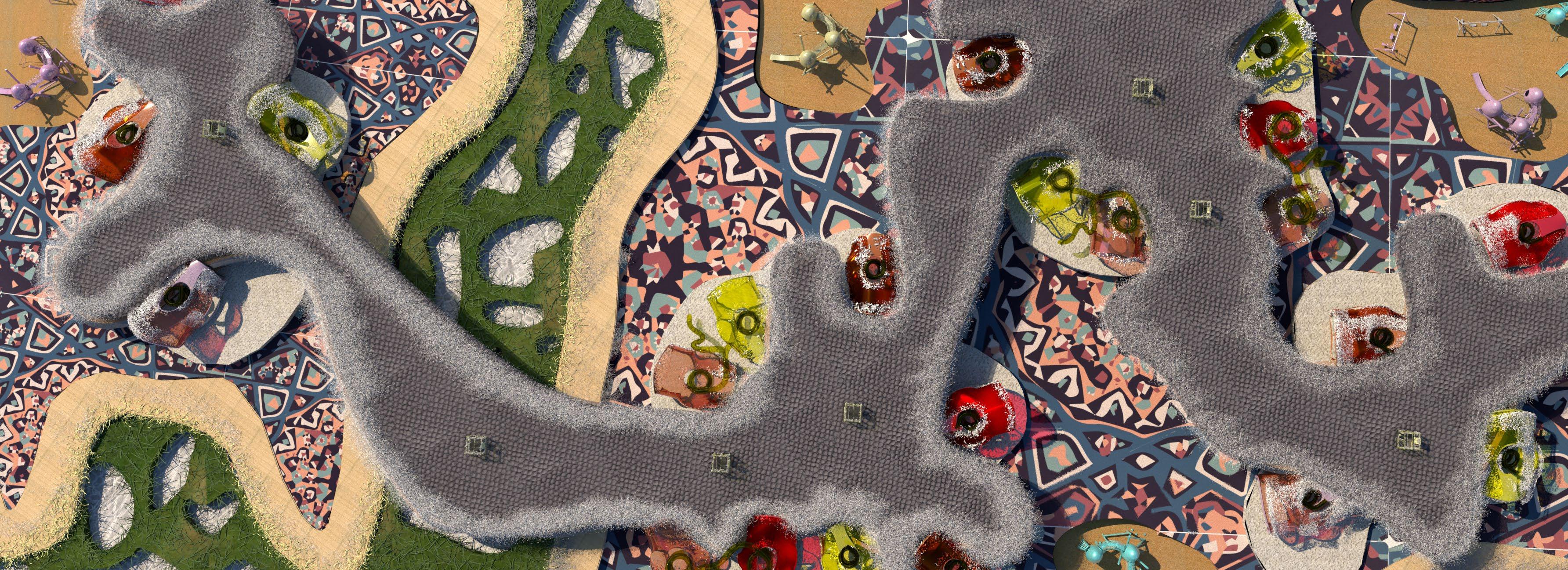 Where the physical and digital space meet, layer of augmented reality of top of the physical landscape, the design approach is a merge of Pop-art, architecture, and my wildest imagination, “Monsters”.