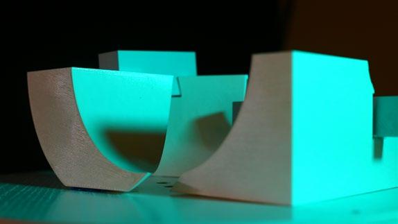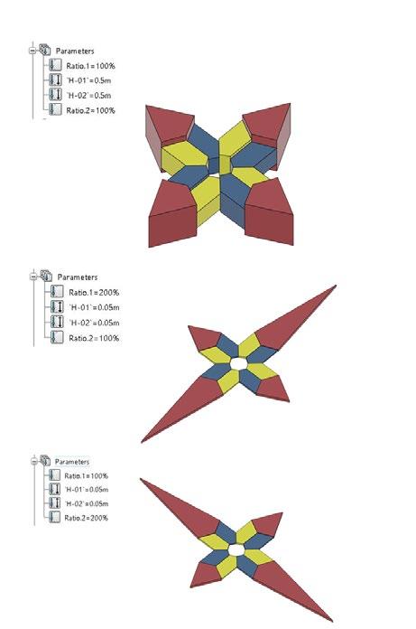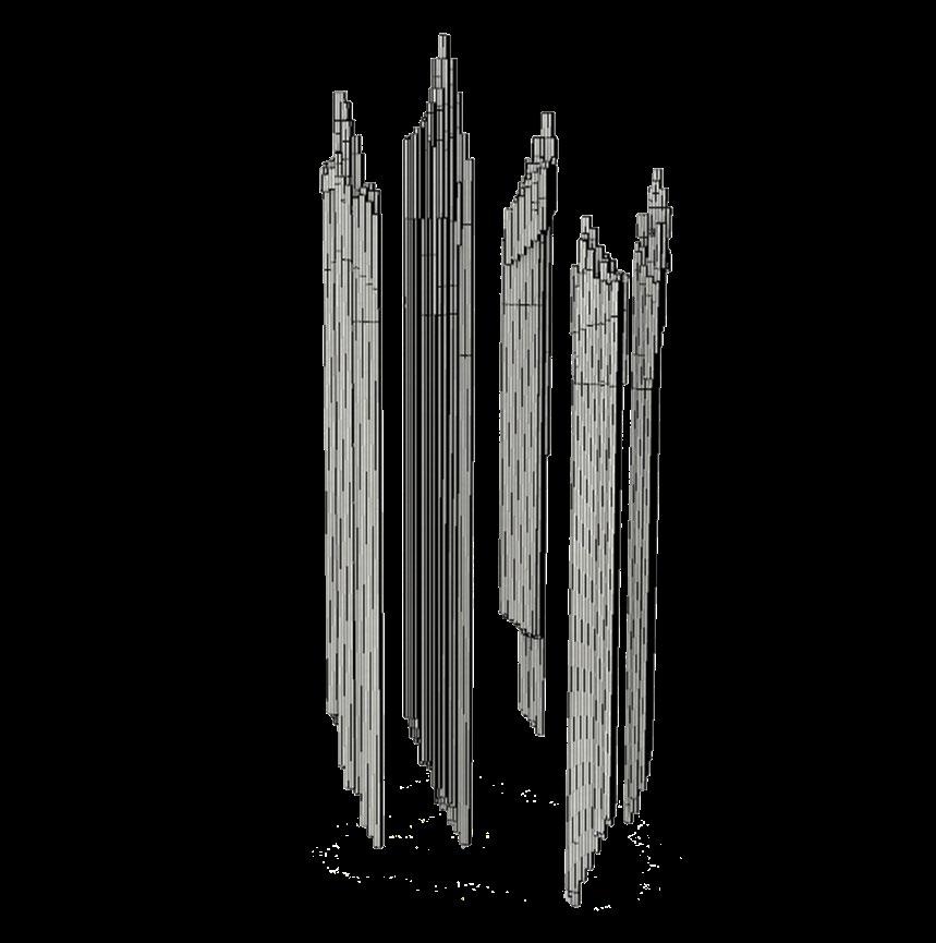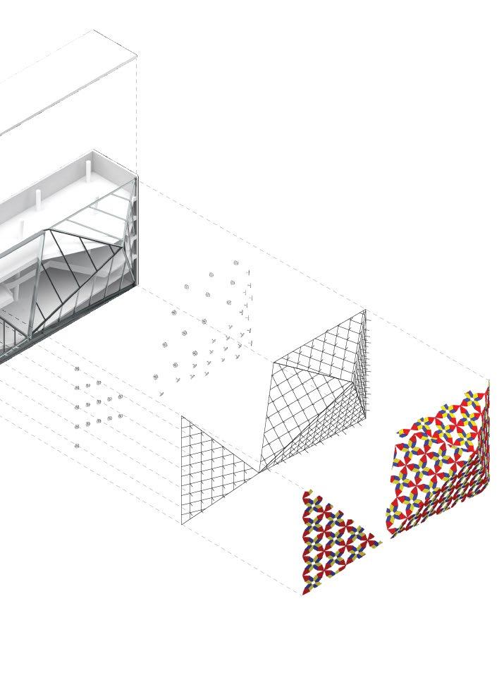 This system is comprised of small power copy pieces, each capable of changing shape and color according to the time of day and weather conditions.