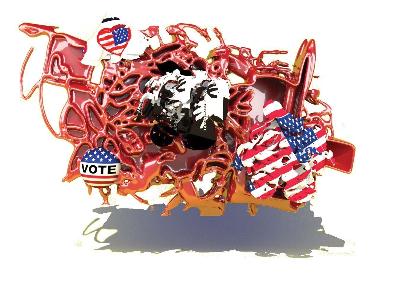 “Experience the evolution of civic engagement with ‘Democracy Unveiled,’ a groundbreaking 3D billboard project that transcends traditional art forms. Through a captivating fusion of beloved animation characters and meticulously crafted collages, this visually dynamic sculpture emphasizes the urgency of voting during critical moments in U.S. history. Witness the transformation from 2D images to a sculptural masterpiece, as ‘Democracy Unveiled’ is a powerful reminder of the interconnected voices shaping the nation’s destiny. Let the vibrant characters and symbolic silhouettes inspire a renewed appreciation for the importance of each vote in the democratic process.”