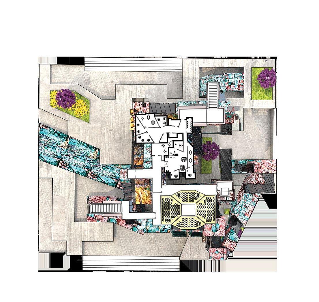 The conceptual genesis was sparked by a Persian rug fragment, intricately influencing materiality and design essence. Located in the heart of Downtown Los Angeles, this innovative initiative reshapes urban education by seamlessly melding indoor and outdoor learning experiences. Drawing inspiration from the captivating textures of Persian rugs, the material palette embraces cultural opulence and transforms the educational space into a dynamic tapestry reminiscent of a Persian garden. Through this project, we aspire to create a distinct and immersive learning environment where the vibrant aesthetics of Persian culture interlace seamlessly with the urban landscape of Los Angeles.”