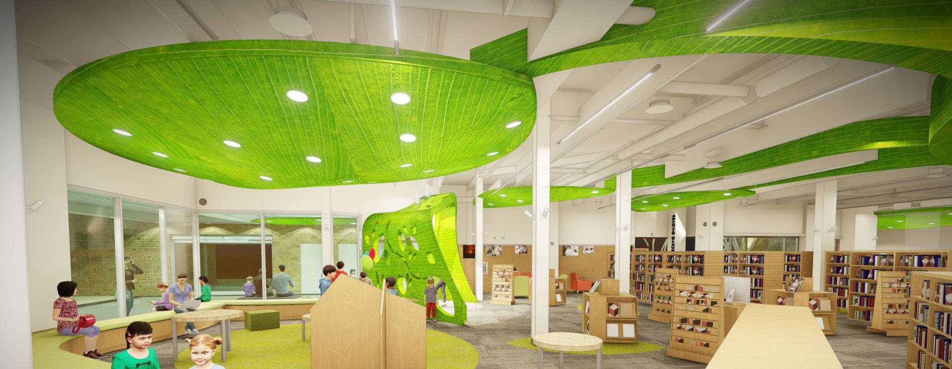 Anchored by the Humber bookstore, the renovation unified six campus buildings, turning a previously dark, neglected entry into an inviting, accessible space.