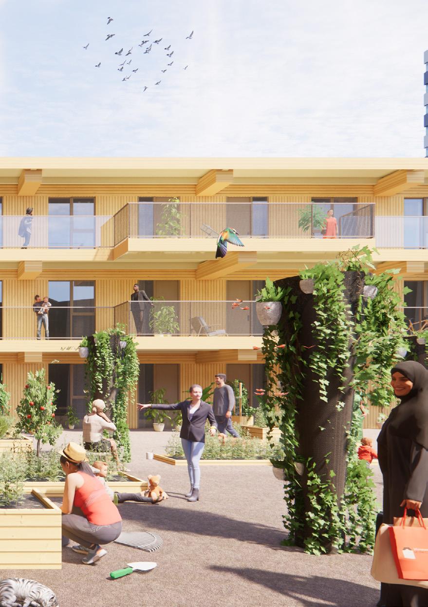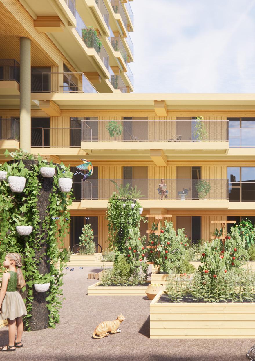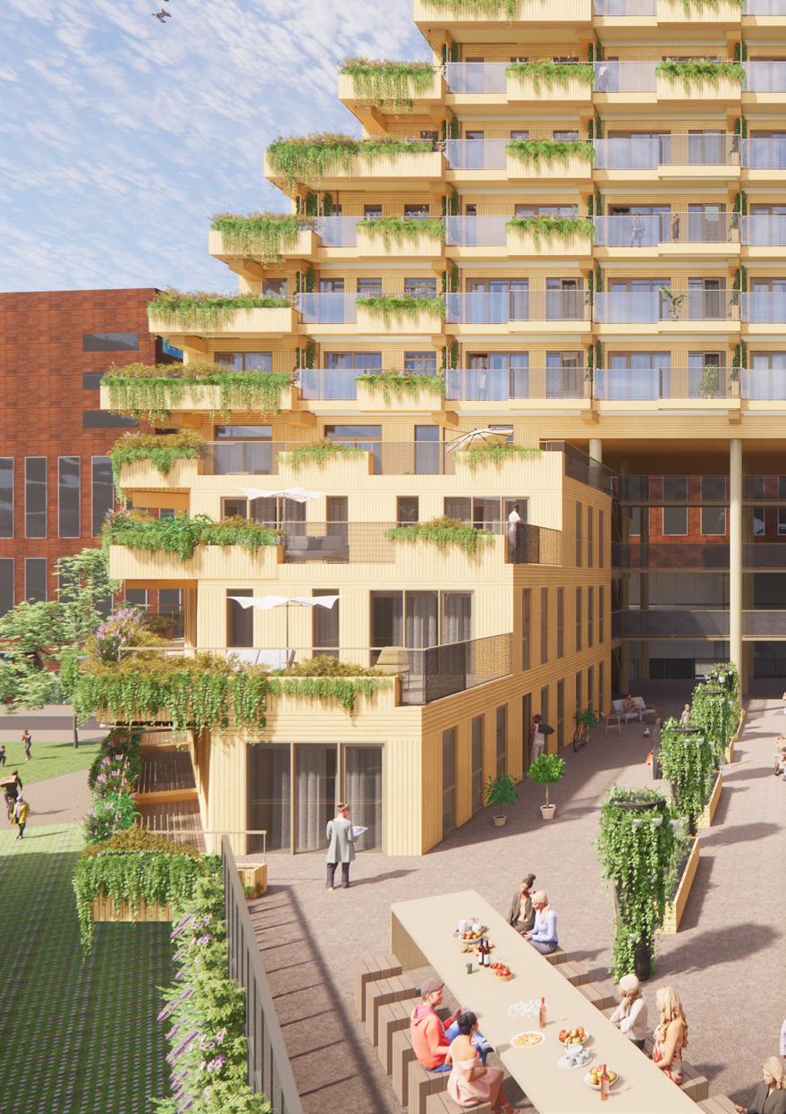 The scarcity of building land and growing demand for urban housing requires smart solutions and extra attention to housing quality. High-rise buildings offer an effective answer to the lack of space in inner-city areas and are both financially and in terms of CO2-emissions efficiently as it utilizes existing urban infrastructure. With a diverse, inclusive residential program and its stepped form with communal roof terraces, the NICE Tower provides space for meeting and connection. With its nature-inclusive design, the tower connects to ecological structures and promotes biodiversity in the city.