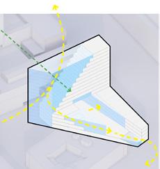 → The building volume responds to its environment