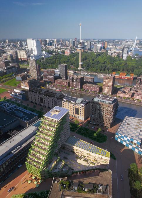 “This residential tower in Rotterdam really has all the boxes: it is sustainable, made of wood, circular, demountable, inclusive, affordable, social and healthy, because it is designed according to the laws of biophilia, which preaches more nature in the built environment.”