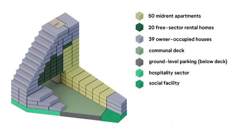 residential (social, midrent and free sector) + working + facilities