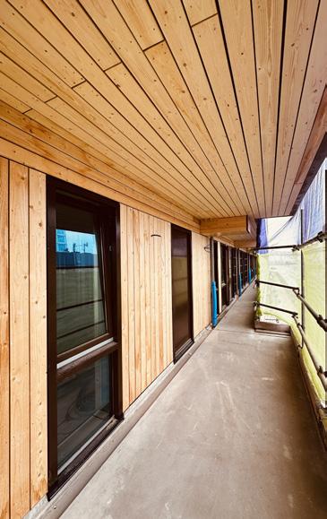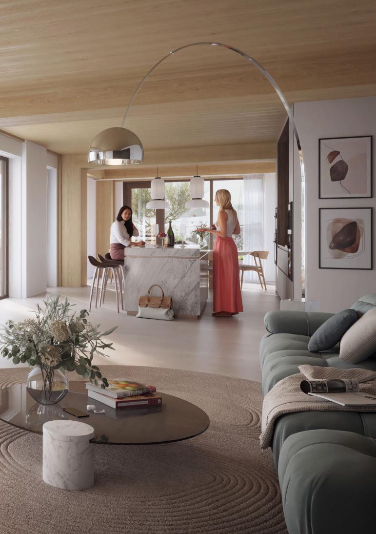At SAWA, the wood in the residences and on the galleries and balconies is kept in sight as much as possible. Only where the perception of the wood is minimal (storage room, toilet, bathroom e.g.), the wood is finished with plaster.