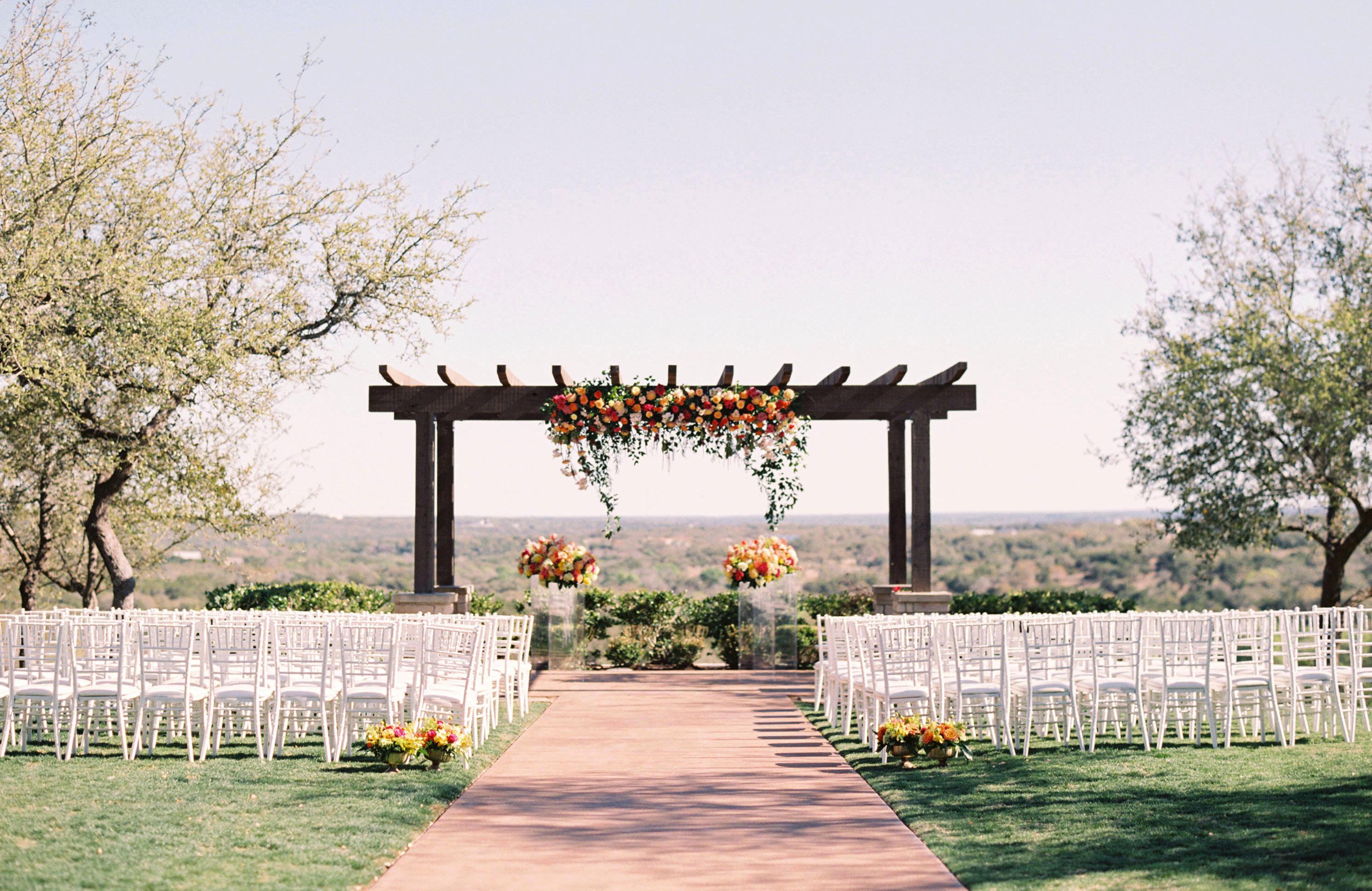 - Outdoor ceremony Trellis with an exquisite backdrop of the Hill Country
