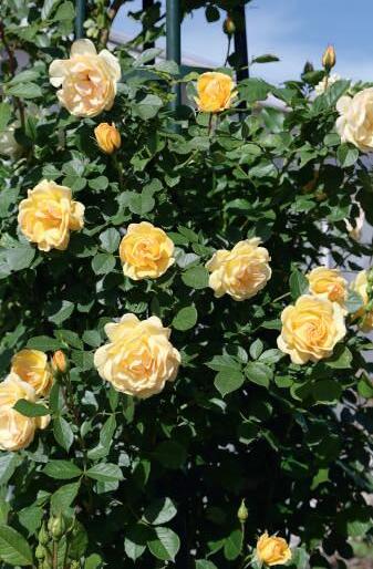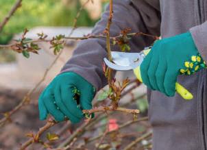 Pour les rosiers grimpants, une taille d’entretien qui consiste à supprimer le bois mort en fin d’hiver est suffisante.