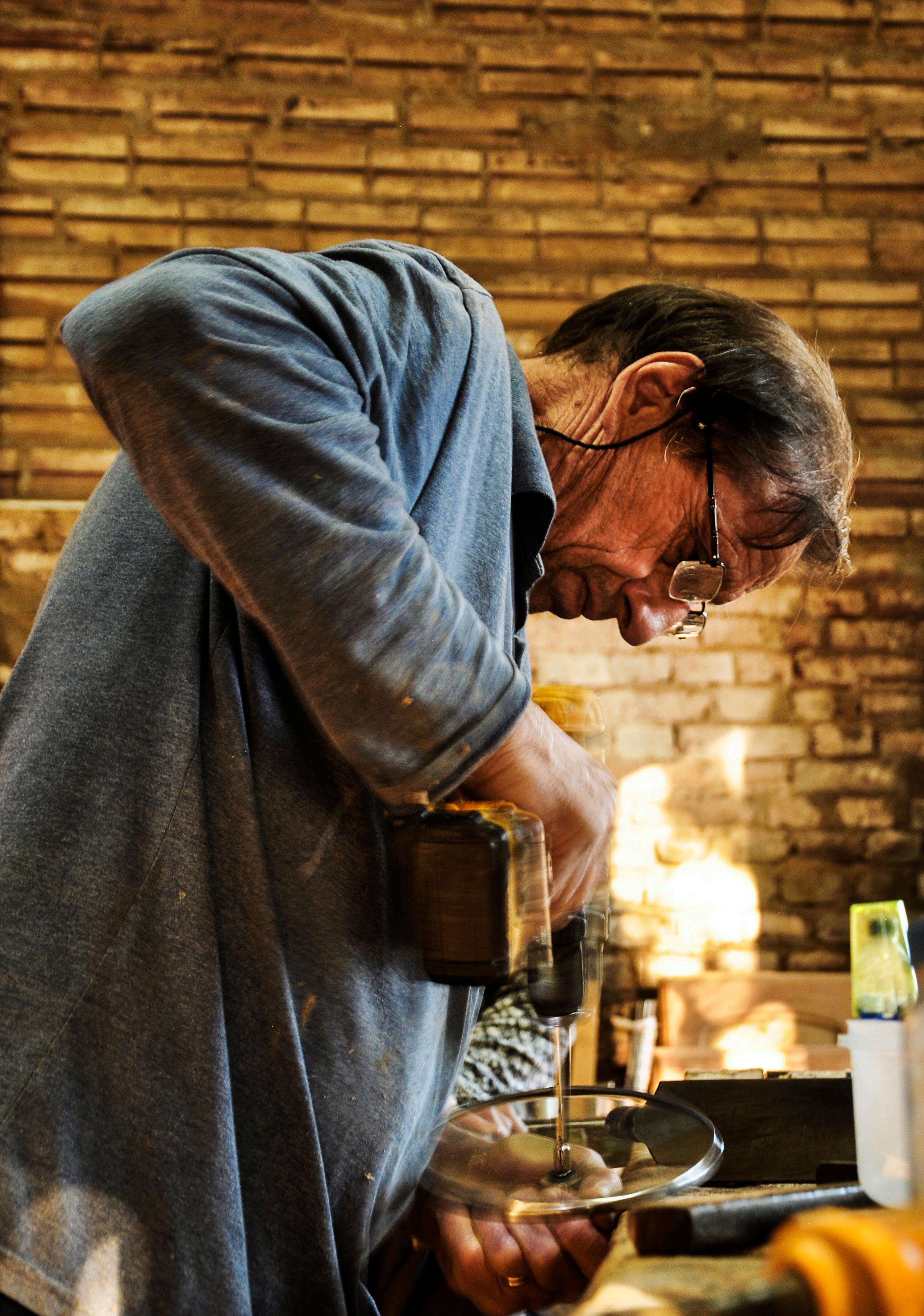 Torres Julia CechinTodos os dias, nas primeiras horas da manhã, o marceneiro Luiz Centenaro Argenta, 69 anos, e a esposa Clarinda Argenta, 68 anos, abrem as portas do estabelecimento número 1845 da Avenida Luís Milani em Frederico Westphalen (RS). No chão coberto de poeira da Marcenaria Argenta, o casal vai deixando o desenho dos passos por onde se movimentam. A trajetória dos pés leva a pedaços de madeira espalhados pelo chão, máquinas e móveis ainda inacabados. A cor predominante é o marrom. O lugar tem cheiro de madeira na maior parte do dia, só abrindo espaço para o aroma de café, ou do chimarrão, nos fins de tarde. A poucos metros de distância, o filho, também marceneiro, Cleomar Argenta, 40 anos, também marca o chão poeirento da A3 Móveis enquanto se prepara para mais um dia de trabalho. Todo dia, antes de começar o expediente, liga o rádio, sempre sintonizado na mesma estação. O costume vem dos pais, que, com o rádio ligado, já estão com as máquinas funcionando. O neto do casal, Henrique Argenta, cinco anos, ainda está dormindo. Quando acordar, o menino vai procurar os brinquedos de madeira que ele mesmo fez na marcenaria do avô. Henrique, assim como o pai, é acostumado com as ferramentas, máquinas e tábuas. As três gerações da família são marcadas por um saber que vem do dia a dia da lida com a madeira.