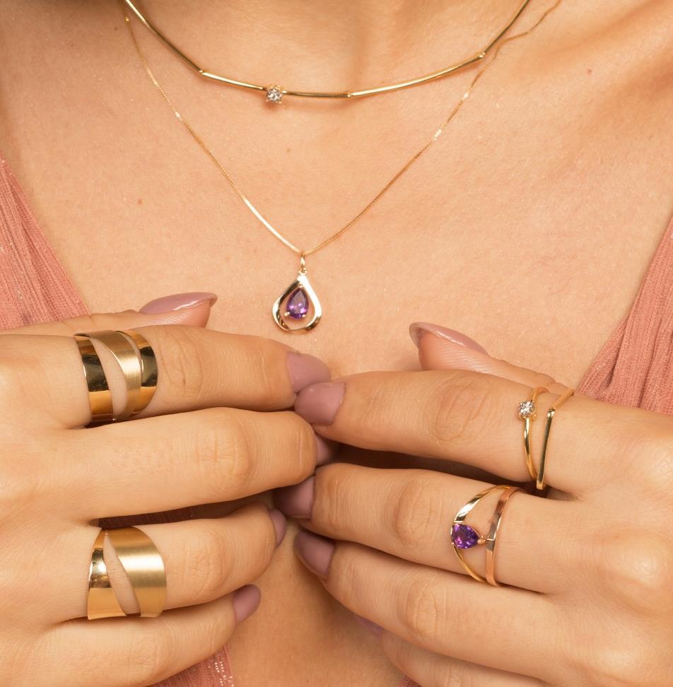 As joias foram desenvolvidas com design moderno e atemporal, e com o toque especial gemas preciosas Ametista, Tanzanita e Pérola Branca. Confira os significados das gemas
