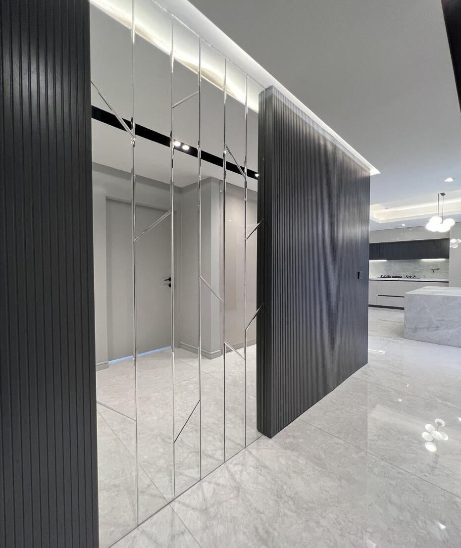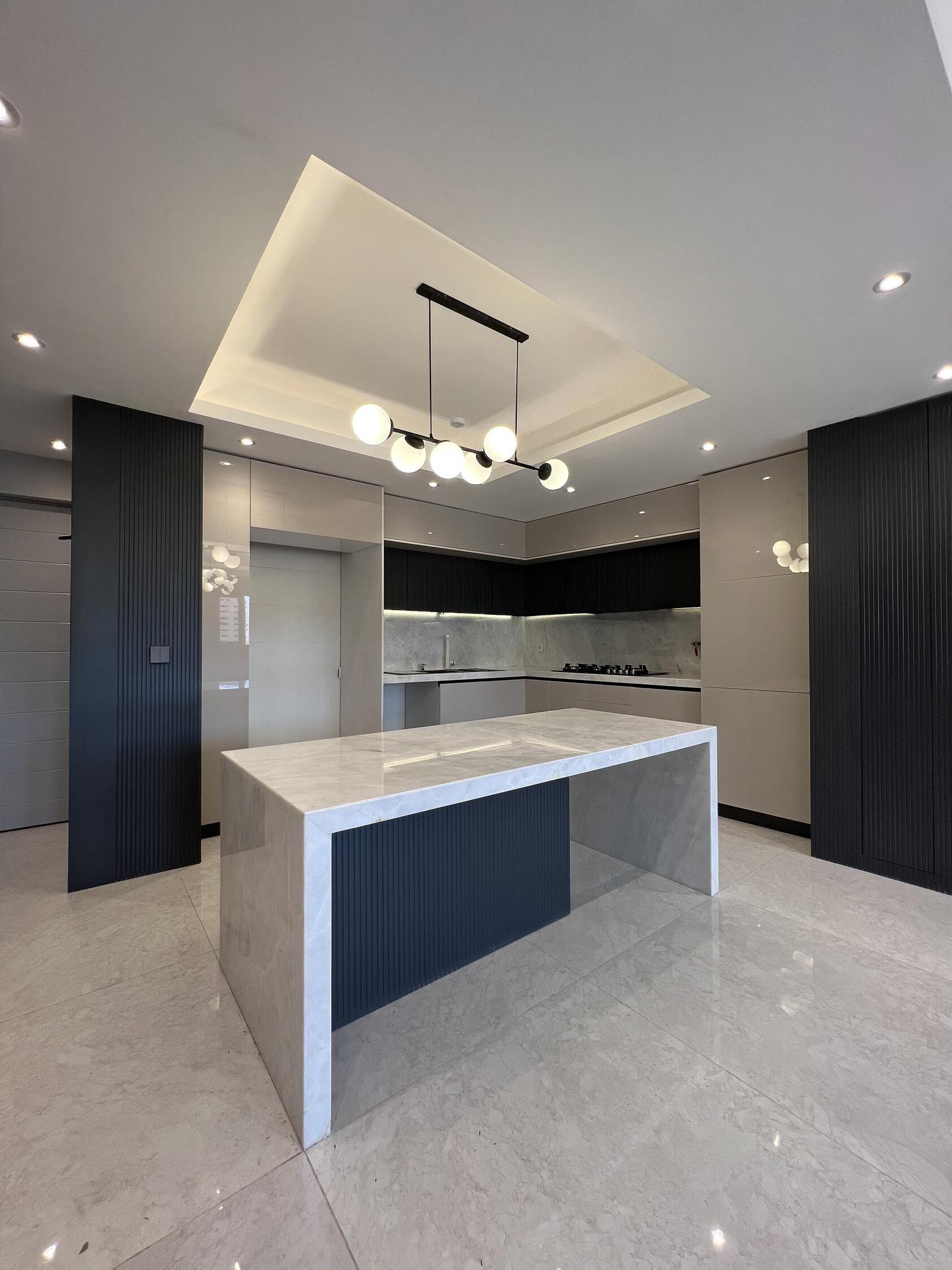 To achieve a sense of unity and continuity, we decided to use ceramic tiles throughout the apartment, including the kitchen area. This choice helped to connect the kitchen with the rest of the living spaces, creating a cohesive visual flow.