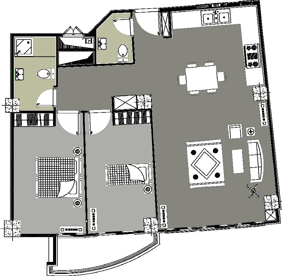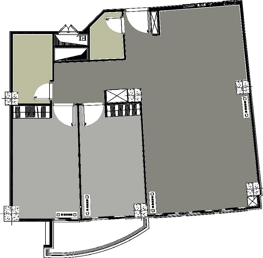 3. Space allocation on the southwest front of the building as an open family living space.