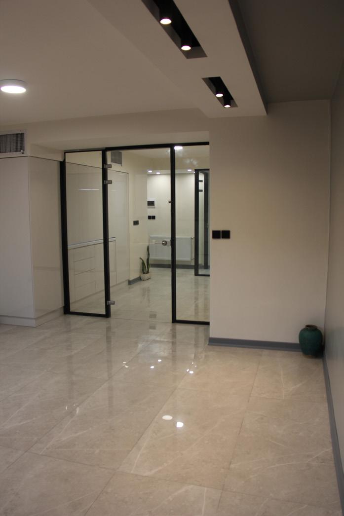 The office was located on the third floor of a commercial-medical building, and the employer approached us, expressing the desire to renovate this 58-square-meter office Initially, we thought about how to make the space appear slightly larger, so we decided to incorporate glass doors throughout the area. The employer also wanted the office to have a small kitchenette, so we included a linear kitchenette in our design, which not only saved space but also proved to be practical.