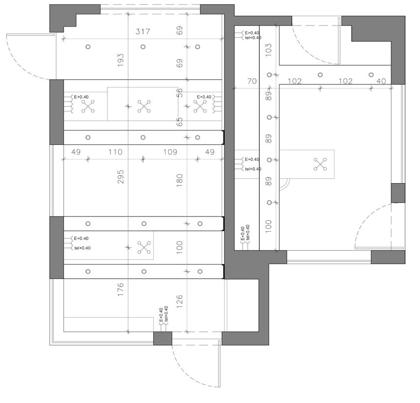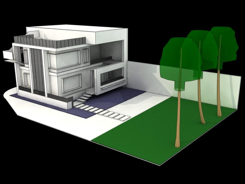 In the first step, I went to the semi-finished building and photographed the status quo, and then decided to go with the native design. Three trees are laid out in front of the house to indicate the main family members.