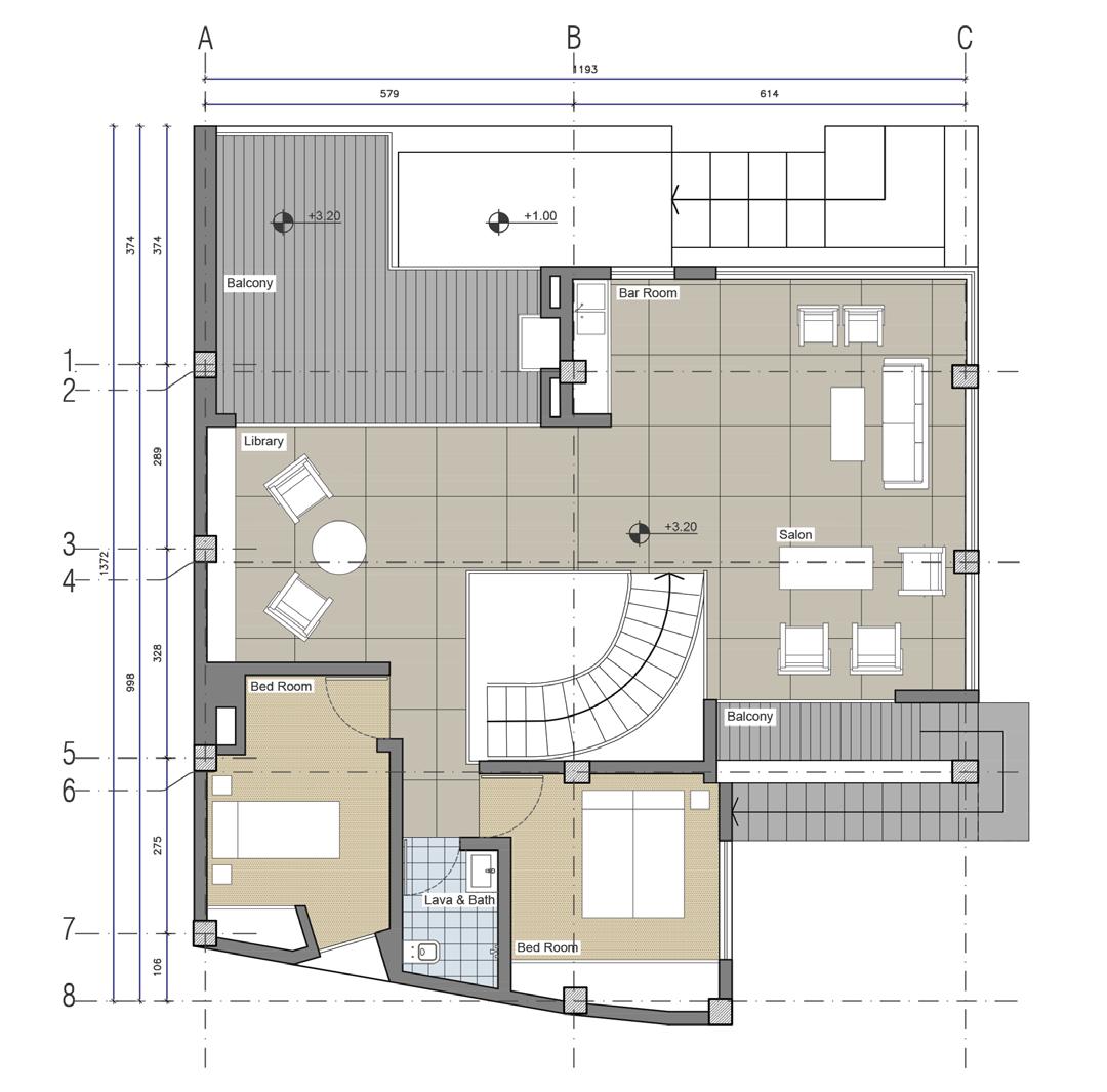This project is situated in Yasouj city, characterized by a chilly mountainous climate. During the winter season, the area experiences intense rainfall, heavy snowfall, and strong winds. The primary obstacle we encountered was the preexisting implementation of the roof and column structure, which required us to undertake the design of the facade and interior. In the initial phase, we faced the challenge of working with the architectural plans of a partially completed building, imposing limitations on our design possibilities. Nevertheless, we embraced this constraint as an opportunity, leveraging it to conceive a unique facade design concept.