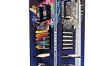 Der stabile Grundkorpus aus Metall verleiht der Konstruktion langlebige Solidität, während die Verkleidung aus Alu-Dibond dem Au ritt eine moderne, glatte Anmutung gibt. Auffällige, aus opalem Acryl gefertigte Riesensti e dienen als leuchtendes Gestaltungselement und transportieren den kreativen Markenkern. Ergänzt wird die Lichtwirkung durch die blaue LED-Ausleuchtung am Boden, die das Display elegant vom Umfeld abhebt und für visuelle Tiefe sorgt. Jedes der vier Seitenmodule aus Polystyrol ist funktional gestaltet und bietet strukturierte Präsentationsflächen für unterschiedliche Sortimente. Insgesamt verbindet die Konstruktion technische Präzision mit ästhetischer Strahlkra und macht damit den Premiumanspruch von STAEDTLER sichtbar.