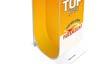 Kompakte Bauweise, frisches Design und hohe Stabilität vereinen sich zu einer schlanken, aufmerksamkeitsstarken Präsentation, die den Mix to Go perfekt in Szene setzt. Das schlanke Display zeigt die 250-Milliliter-Dosen in einer au älligen Weizenähren-Struktur, die Dynamik und Natürlichkeit vermittelt. Dank der flexiblen Form passt es in jeden Verkaufsraum und nutzt den Platz auf der Viertelpalette optimal aus. Die großflächige Abbildung auf der Rückseite, kombiniert mit den markentypischen Rot- und Goldtönen, verstärkt den Wiedererkennungswert. Robuste E-Welle sorgt für eine langlebige Nutzung, während die leuchtenden Farben auch aus der Distanz für starke Fernwirkung sorgen. So entsteht eine verkaufsstarke Lösung, die Lust auf den fruchtig-frischen Oldesloer & Orange Mix to Go macht. Durch die klare vertikale Struktur und den hochwertigen Druck vermittelt das Display Professionalität und Markenstärke direkt am POS.