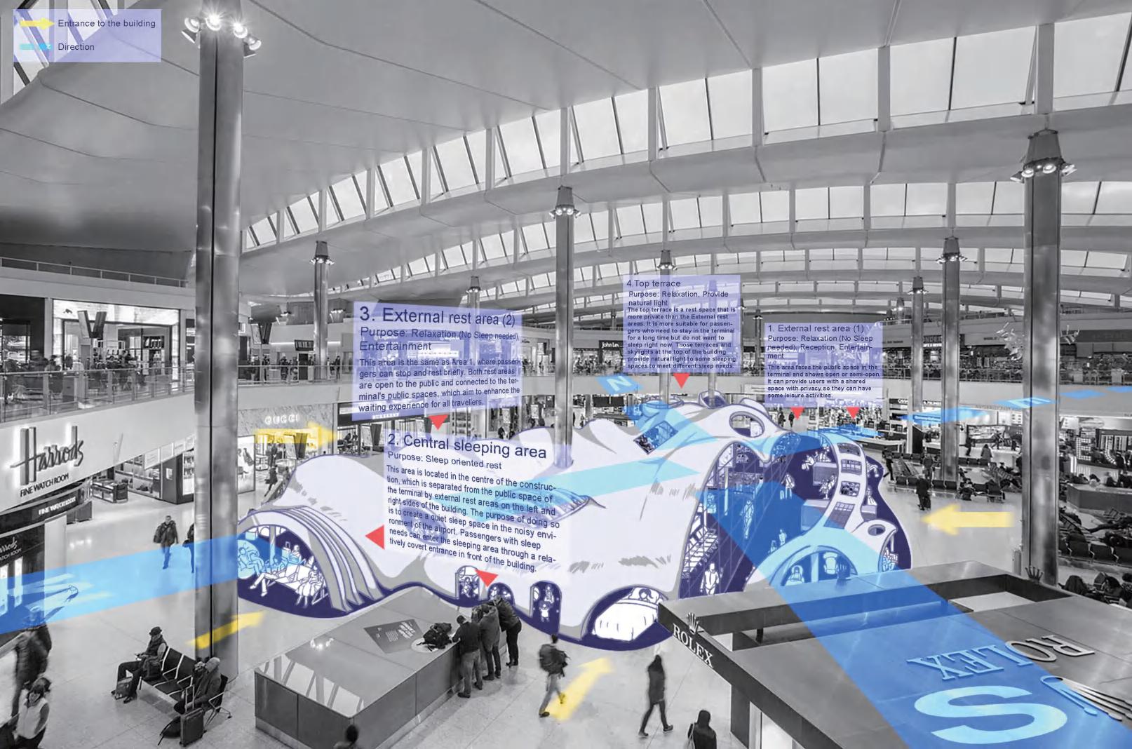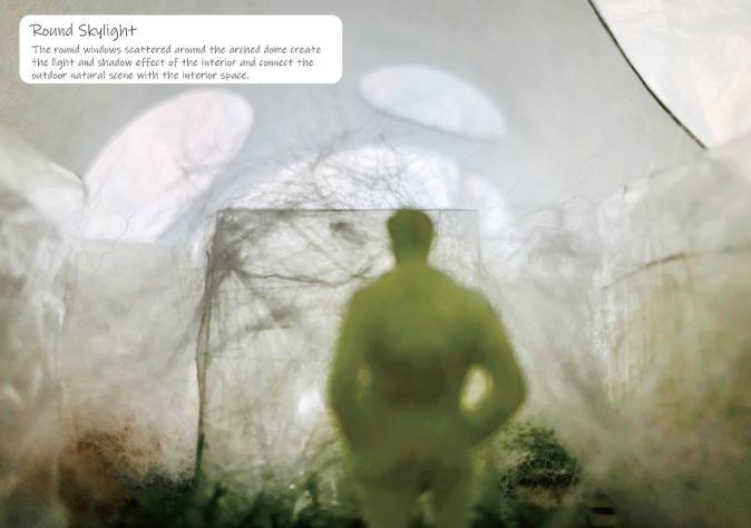 The design focus of this project is the composition of a spatial atmosphere. How a person defines the atmosphere of space (or region) depends on this person's experience and feelings in this space or area. Different experiences often bring about other emotions, and these emotions could affect the individual's view of things. For example, people usually feel delighted when staying in a warm and bright place. The space atmosphere could be affected by many factors, such as the forms of structures, building materials, lighting conditions and so on.