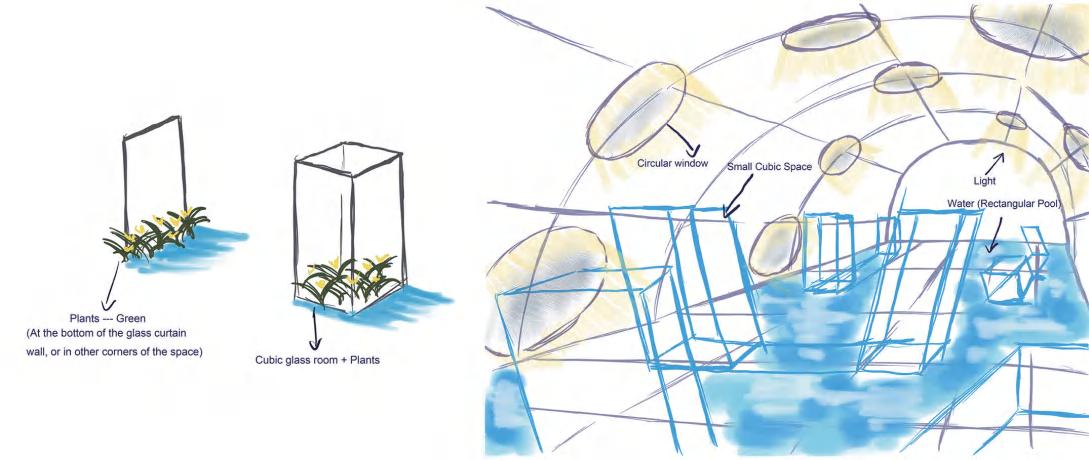 Sketch: Hazy Glass Room (Left) and Round Lighting Window (Right)