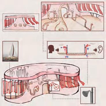 There are four sound collection units in the building. Considering the building is located at sea, these four sound collection units have been designed for interactive spaces targeting the sounds of wind, rain, waves, and boats at sea allowing users to experience and record these sounds more deeply.