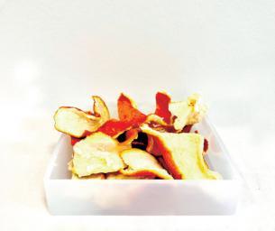 Peel off orange Grind up dry orange peels Pour the