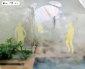 Nowadays, due to modernization, more and more people choose to live in the city for a long time. For these citizens, a natural environment is relaxing and refreshing. The Hazy Sunroom is an interactive space for people to relax. It is located in the Kew Garden and aims to provide a space for modern urban residents to interact with natural elements.