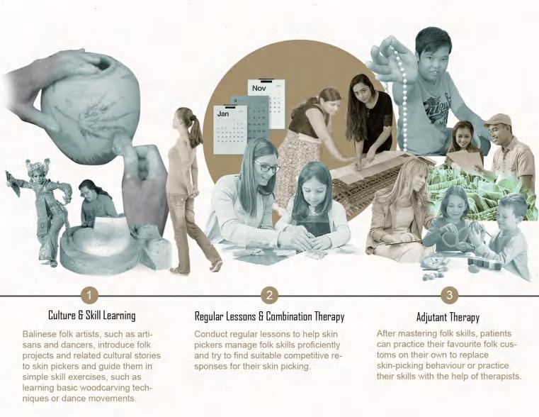 Besides, Sculpture, wood carving, and other handicrafts are also unique features of Bali. I believe that these art projects have the potential to be combined with dermatillomania therapy. For example, encourage patients to engage in simple handicraft making to form a competing response (alternative behavior) to skin-picking. This will allow them to learn new skills and explore the culture of Bali while undergoing treatment.