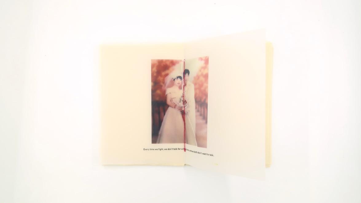 • I think the white box could not convey my concept well, so I replace the box and into tracing paper. Tracing paper looks very thin and fragile, just like their relationship. I hope their relationship can be maintained by the red line.