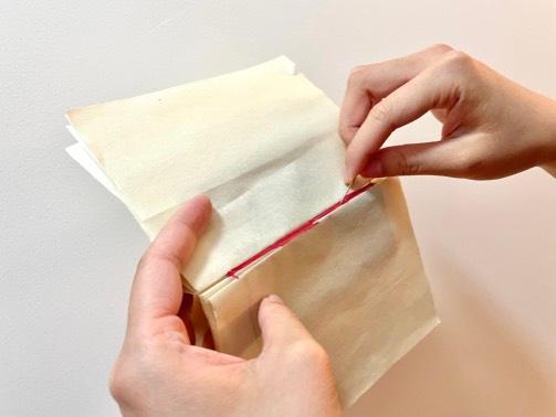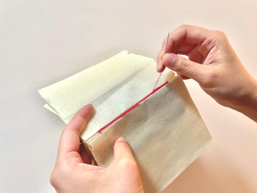 • I think the ‘red line’ element and the concept should be continued. It is good to use my graphic skills to design the archive book. So I decided to use thread binding.