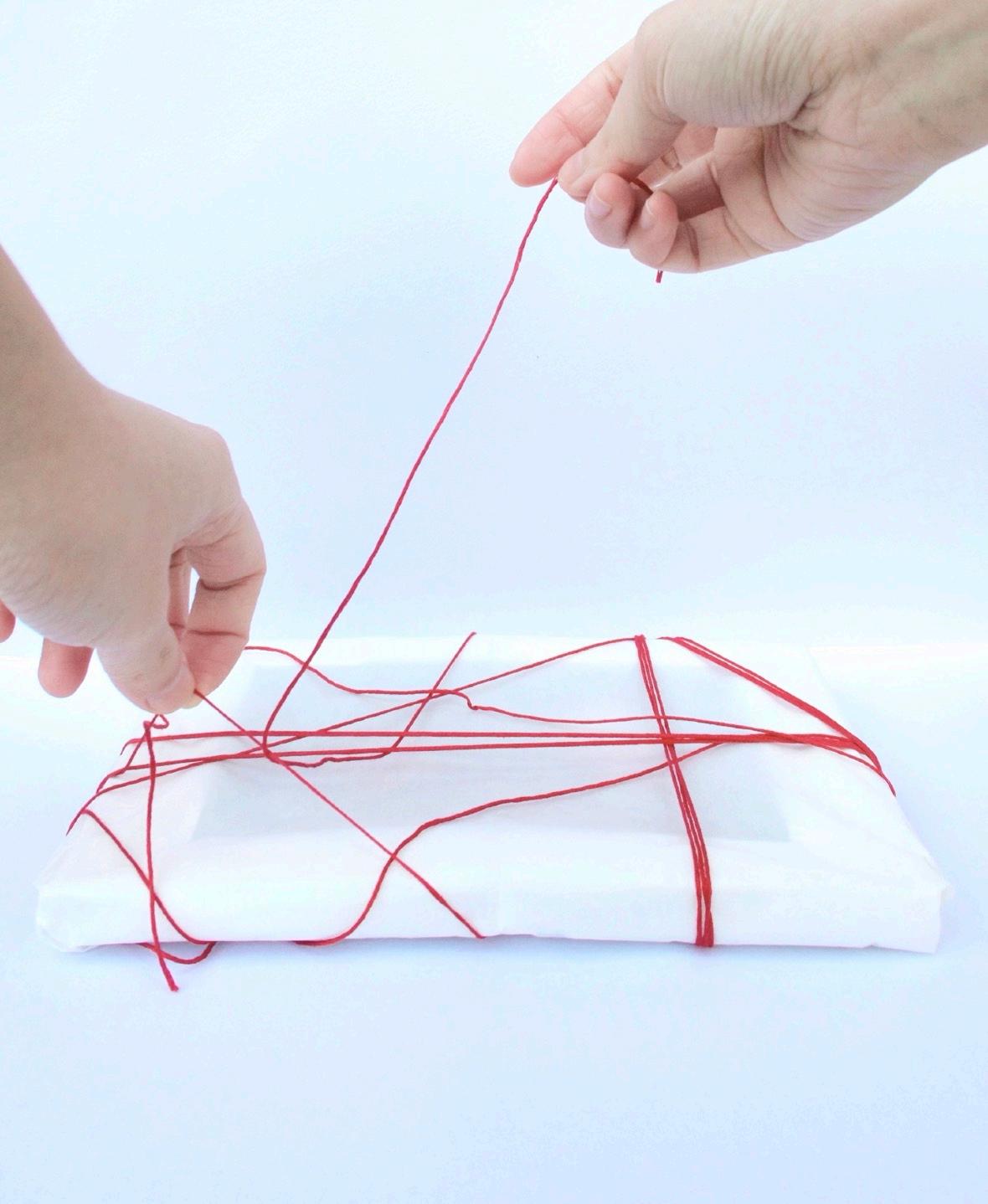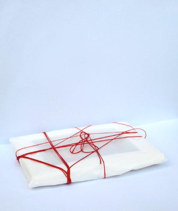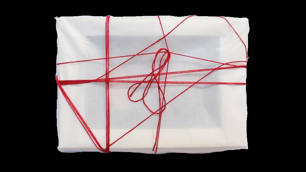 • My idea is to bind a white packing box with red lines, which not only plays the role of binding and fixing the box but also reflects my concept.
