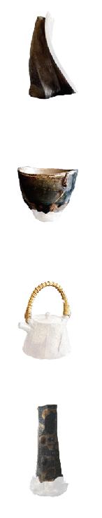 The clay is transformed into different looking by nature force and craft techniques. I think my design reflect this concept. Akira's concept focuses on nature and rusticity. My shapes are designed to be irregular, show the beauty of nature. Also, extracting shapes from his artworks bring out his work.