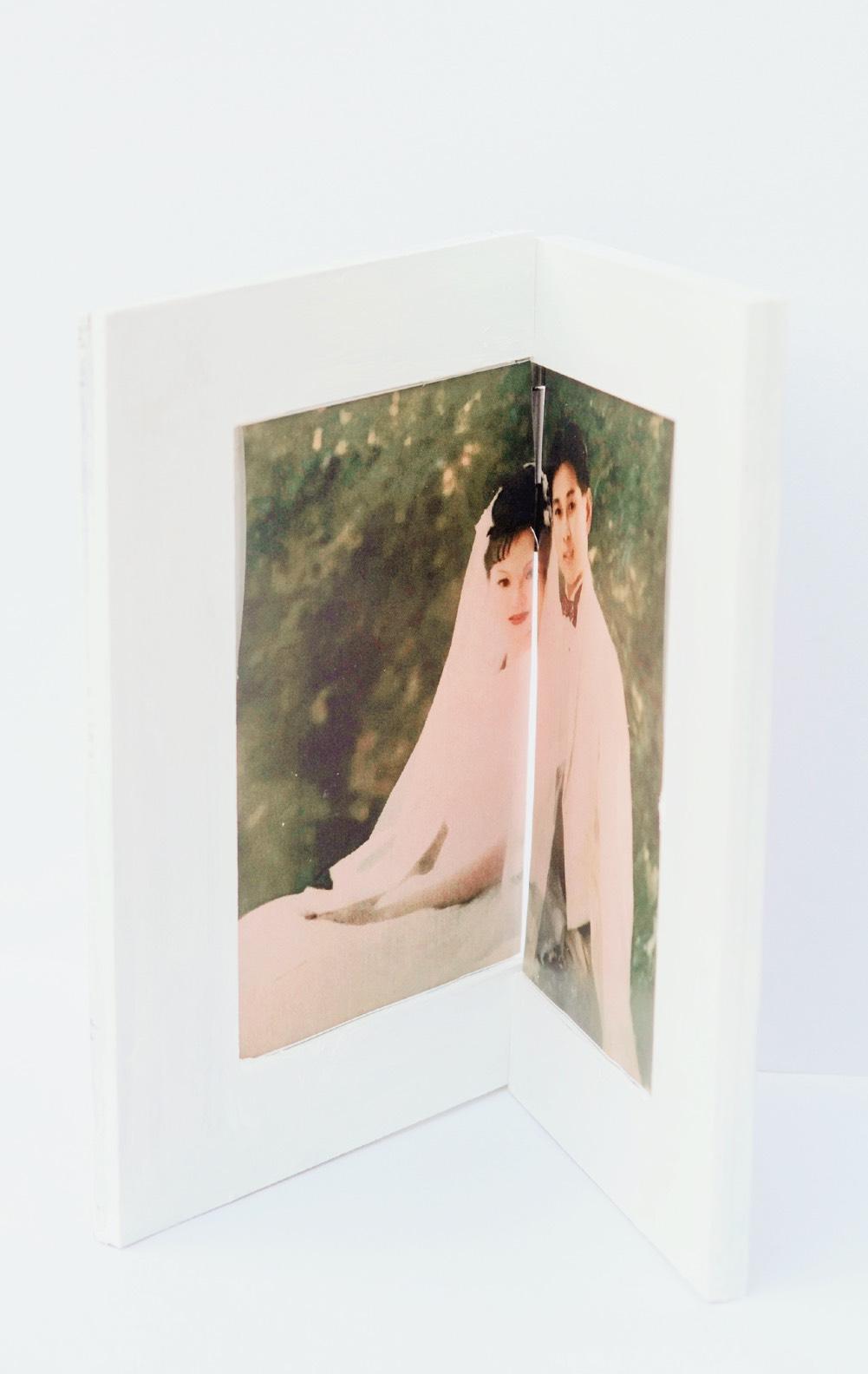 • I will split a photo frame and attach a hinge in the middle to make the frame collapsible.