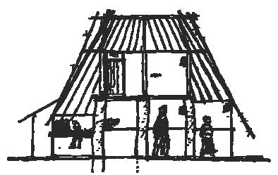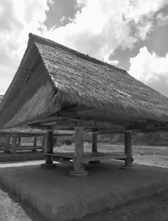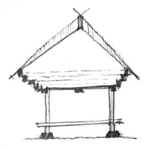 A sketch study depicting various types of traditional buildings in North Lombok during the field study, all sharing the same characteristic: the Amben, a platform designed for communal gathering.