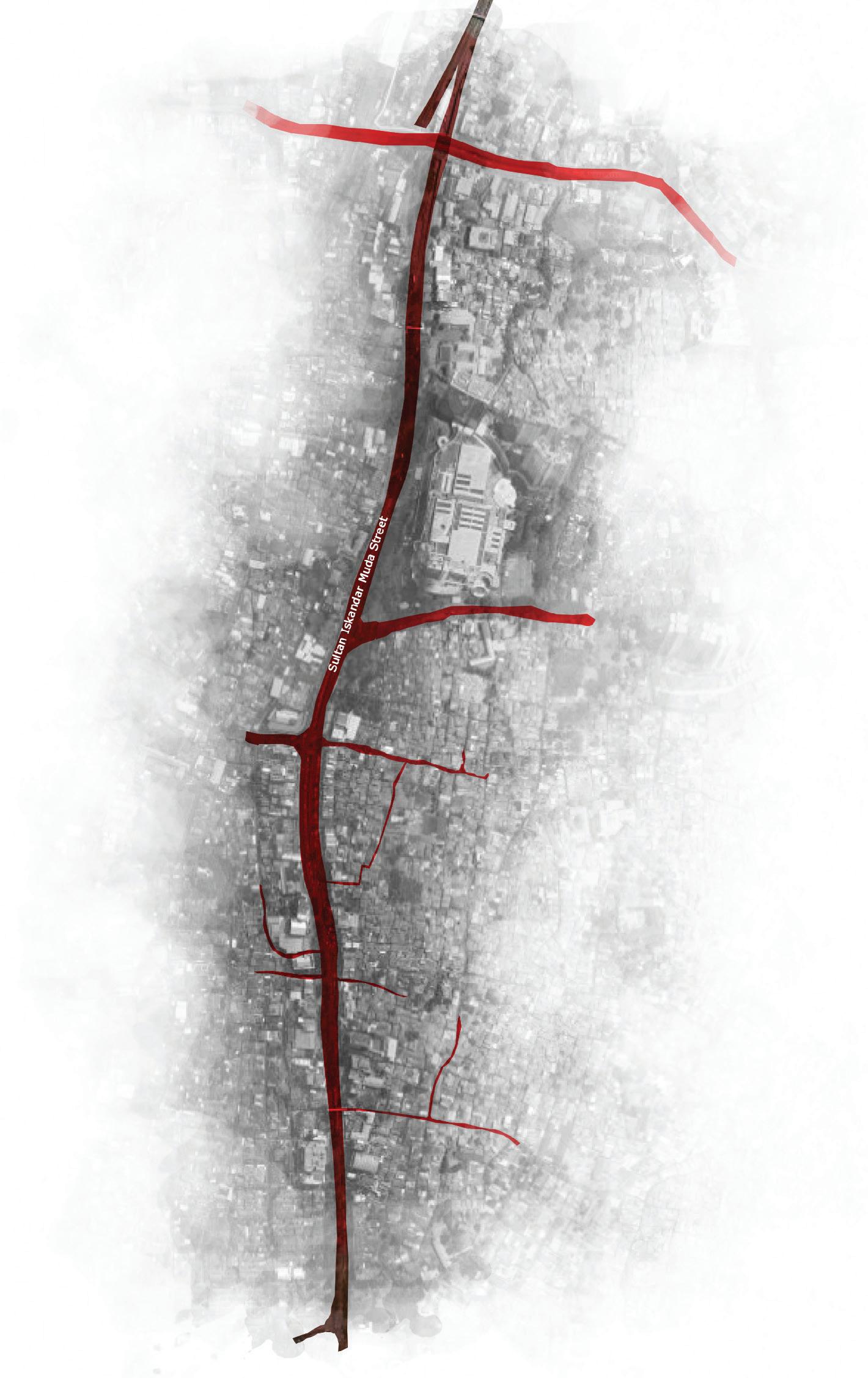 Spatial activities such as communal areas, traditional playgrounds, and spaces for UMKM (street vendors) are integrated with the existing street in front of the site, which is currently underutilized by residents. The goal is to transform this road from just a passageway for bikes into an extended public space, adding value and improving its function for the community.`