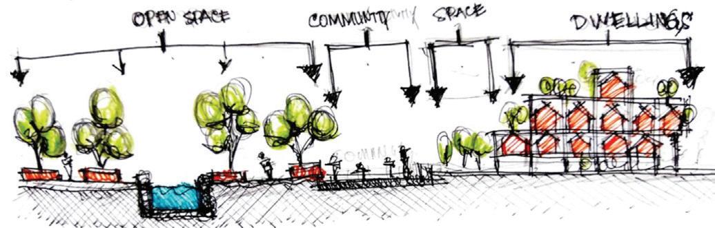 The availability of co-farming facilities, in response to the preferences of the majority of users, allows each residential block, with 250 m² of rooftop space, to produce up to 150 kg of vegetables per month.