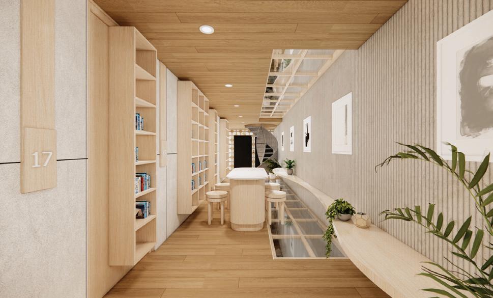 I conducted research on boarding houses in Gandaria, studied competitors, and explored new trends in the industry. My idea was to create a “healing housing” concept that blends co-living spaces with public areas. I designed dynamic corridors to encourage interaction between tenants, allowing entire floors to be rented for communal activities.