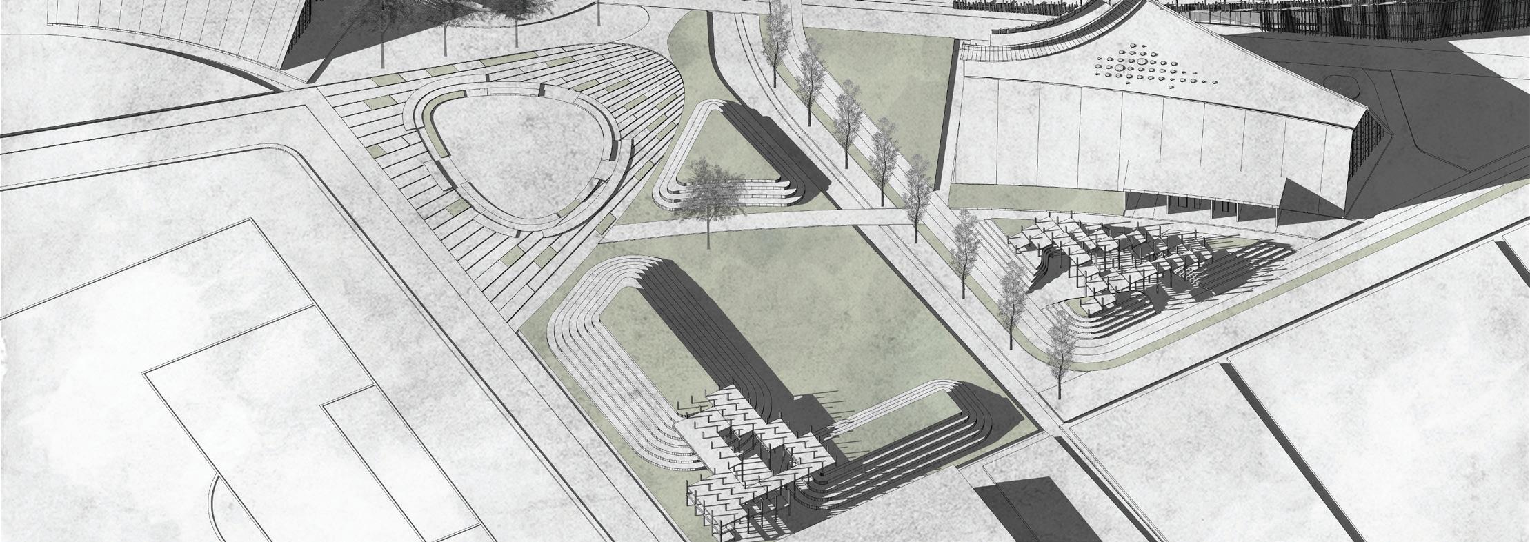 To optimize space functionality, I applied space syntax principles, carefully zoning the site by creating a coordinate matrix to identify ideal groupings for different functions. This approach resulted in a master plan that encourages interaction and outdoor activities. The buildings are arranged with low height to minimize environmental impact, while extended roofs provide cover for outdoor spaces, merging the built environment with nature seamlessly.