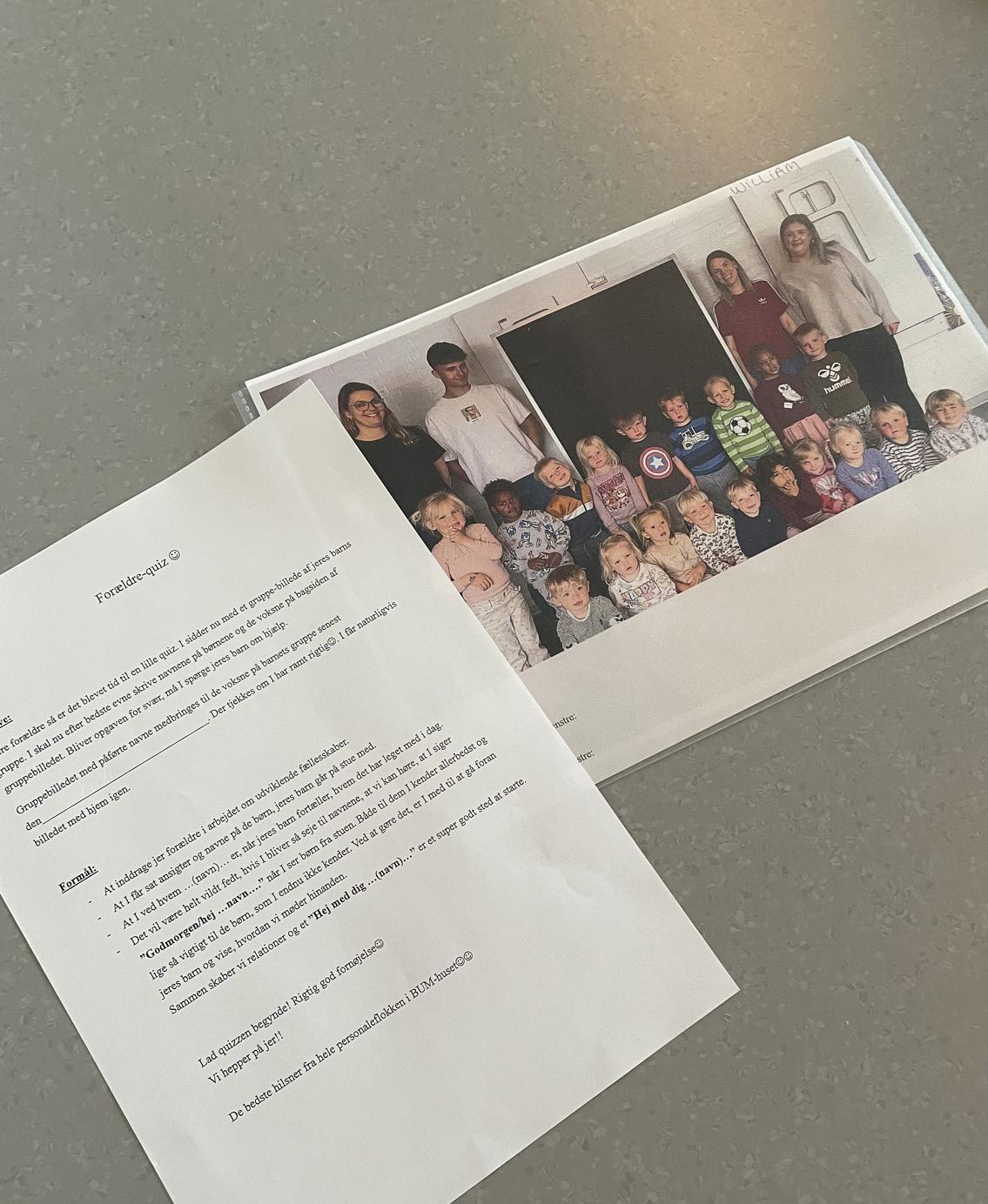 Vi, som voksne, er rollemodeller for børnene, hvilket vi også har haft fokus på, i at få inddraget forældrene i. Derfor har alle børn fået et gruppebillede og en quiz med hjem, hvor forældrene skulle sætte navn på børnene og pædagogerne på billedet. Hvis forældrene havde svært ved denne quiz, måtte de spørge deres børn om hjælp. Dette håber vi er med til at hjælpe med at danne relationer og udviklende fællesskaber blandt andre børn og deres forældre.