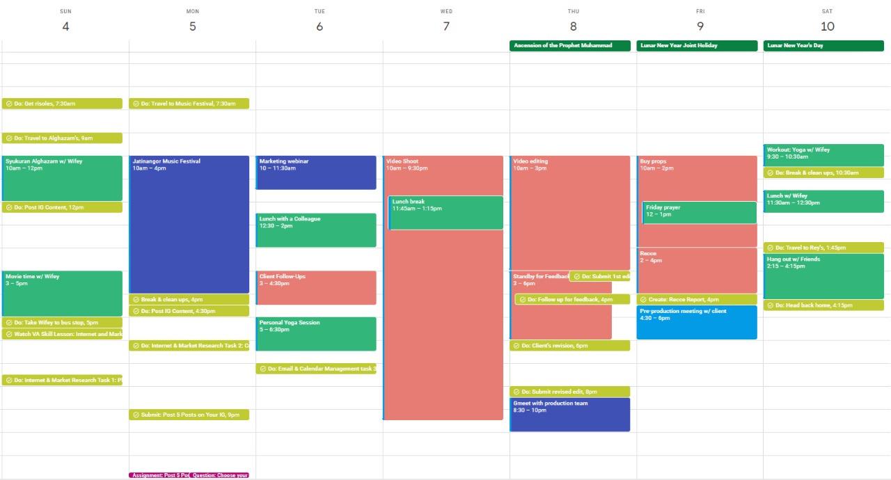 Never let your schedule get off track. I utilize tools like Google Calendar & Asana to: