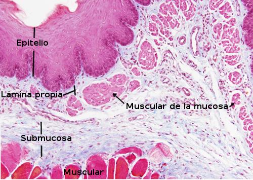 - Su capa muscular de la mucosa está compuesta por las dos capas de células musculares una circular interna y otra longitudinal externa