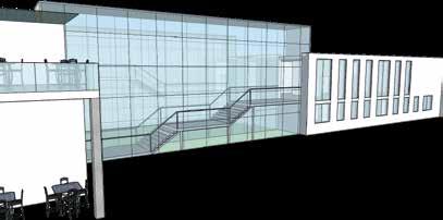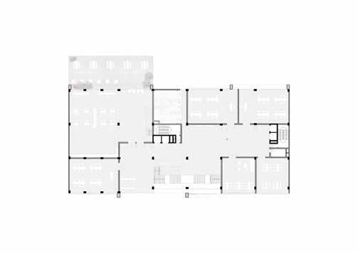 El carácter principal de la escuela se basa en un diseño abierto y social. Esto se ha logrado con la intención principal de una buena circulación. La escalera en zigzag es el corazón social del edificio y es totalmente visible desde el exterior gracias a la fachada de vidrio. Está siempre conectada con los espacios de uso común. El hueco de la escalera saluda a los usuarios inmediatamente al ingresar al edificio, operando como un lugar de reunión perfecto para estimular la interacción entre los diferentes usuarios.