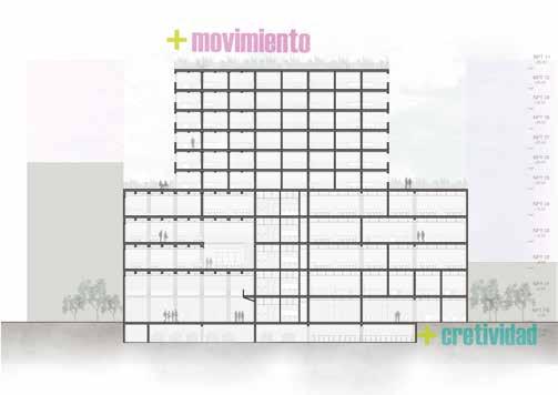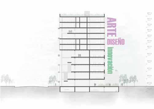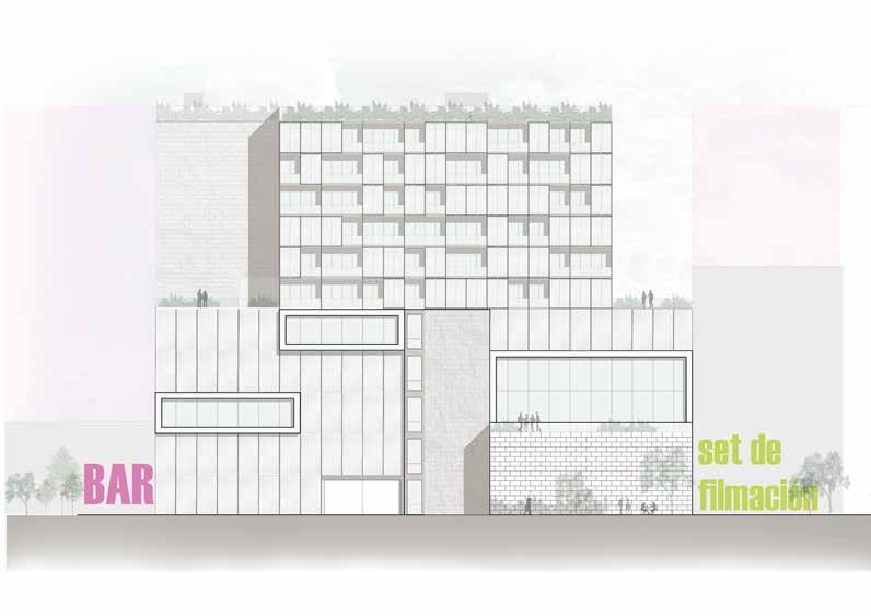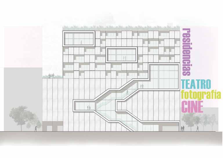 Nuestra propuesta a desarrollar es una escuela de medios audiovisuales en donde se impartirán cases de cinematografía, fotografía y teatro. En la parte superior del edificio habrá una residencia de estudiantes.
