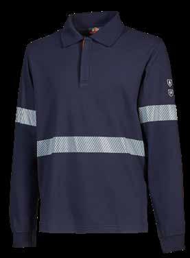 Langärmeliges Poloshirt aus flammhemmendem Modacryl-Piqué mit segmentierten, heißversiegelten Reflextorstreifen, die sich der Bewegung anpassen und Atmungsaktivität und Komfort verbessern. Dauerhafter Schutz vor Hitze, Flammen und Lichtbögen in ansprechender und funktionaler Optik.