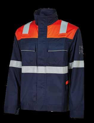 • Verstellbare Ärmelbündchen aus Modacryl mit flammhemmendem Klettverschluss 5 cm breite, zertifizierte, flammhemmende Reflexstreifen, waschbar bei 60 °C für 50 Waschgänge